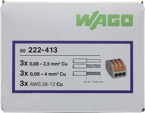 - Клемма 3 лапки WAGO