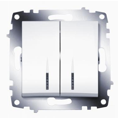 Выключатель двухклавишный с подсветкой Cosmo - белый
