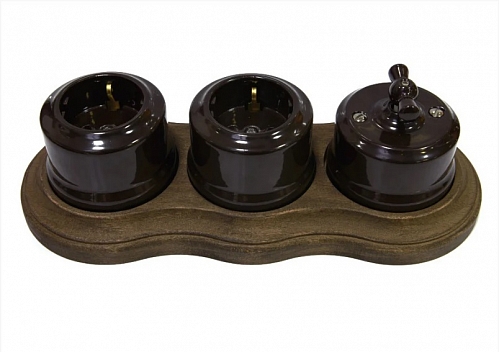 Тройная рамка для механизмов, в комплекте с суппортом. В наличии в трёх цветах: Бук натуральный, Бук тонированный, Бук винтаж.