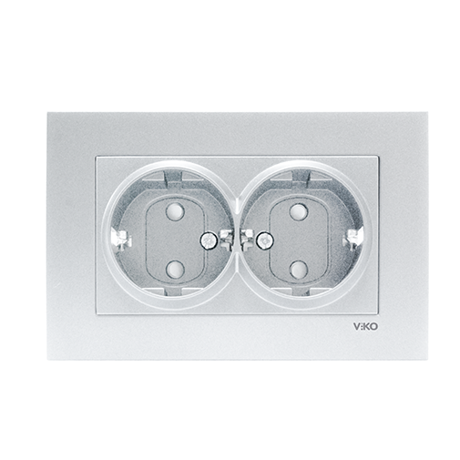 Штепсельная розетка сдвоенная с заземлением Viko Novella, предназначена для трех-контактной проводки.. Основной задачей заземления является защита от удара электротоком. Наличие заземления у розетки делает работу сложных бытовых устройств: стиральной машины, компьютера, видео и аудиоаппаратуры и т.д., безопасной и стабильной. Сдвоенная розетка монтируется в одну монтажную коробку. Корпус сделан из пластикового изоляционного материала, производитель комплектует розетку стандартной рамкой.